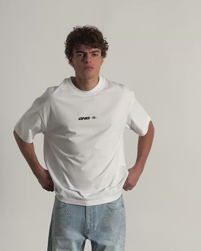 Presenta un gráfico delantero y trasero en serigrafía en relieve con la iconografía de GNG.